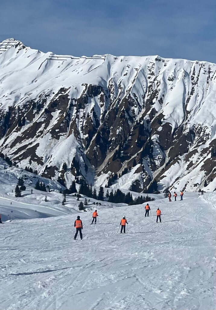 Die Skiexkursion der zehnten Klasse führte 25 Schülerinnen und Schüler und drei Lehrkräfte ins Skigebiet von Warth-Schröcken. Zwei Anfänger wurden im Kurs schnell an das Niveau der Fortgeschrittenen herangeführt. Trotz nicht optimaler Wetterbedingungen am ersten Tag konnte die gesamte Gruppe Fortschritte erzielen und an den zwei weiteren Skitagen bei „Kaiserwetter“ ihr Können zeigen und erweitern. Das harmonische Miteinander prägte die gesamte Fahrt und sorgte dafür, dass die Woche für alle zu einem gelungenen Erlebnis wurde. Das gemeinsame Abendessen und viele Gespräche stärkten zusätzlich den Zusammenhalt und machten die Exkursion unvergesslich für alle Beteiligten.